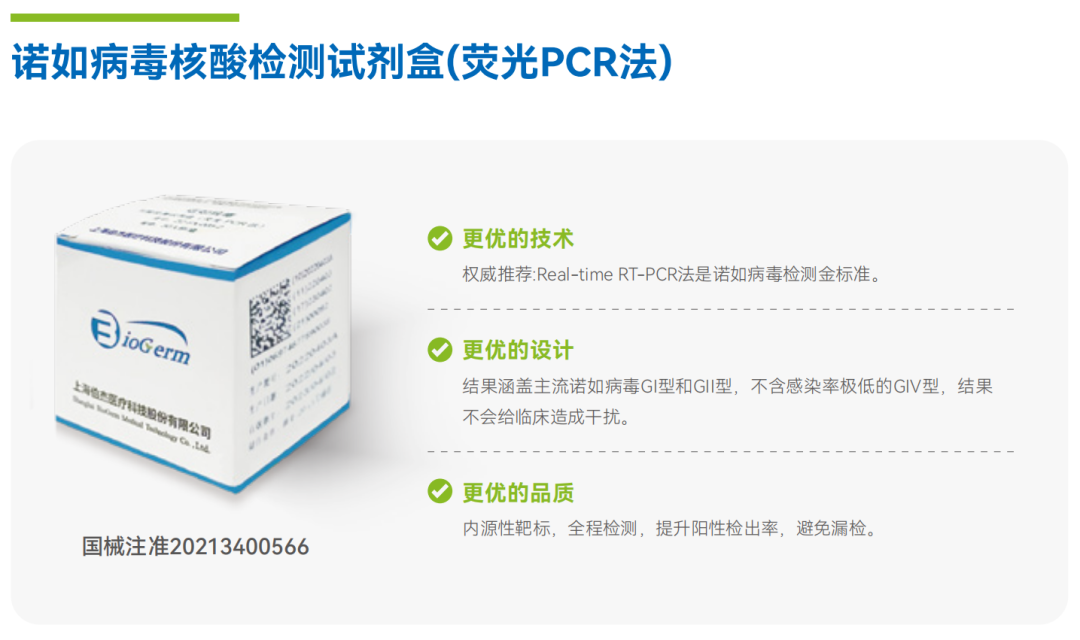 諾如病毒檢測主要有抗原檢測和核酸檢測,《諾如病毒感染暴發(fā)調(diào)查和預(yù)防控制技術(shù)指南(2015 版)》中指出:RT-PCR方法靈敏度和準確度高,是實驗室檢測諾如病毒的金標準。上海伯杰醫(yī)療的伯杰的諾如病毒核酸檢測試劑可在1.5小時內(nèi)出報告。