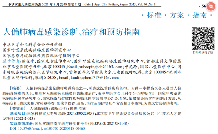 - 《人偏肺病毒感染診斷、治療和預(yù)防指南》(2025年版)