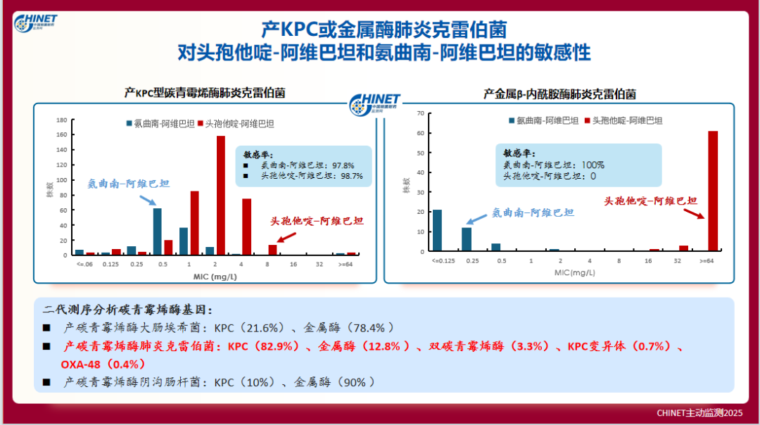 圖2:產(chǎn)KPC或金屬酶肺炎克雷伯菌對(duì)頭孢他啶-阿維巴坦和氨曲南-阿維巴坦的敏感性比較