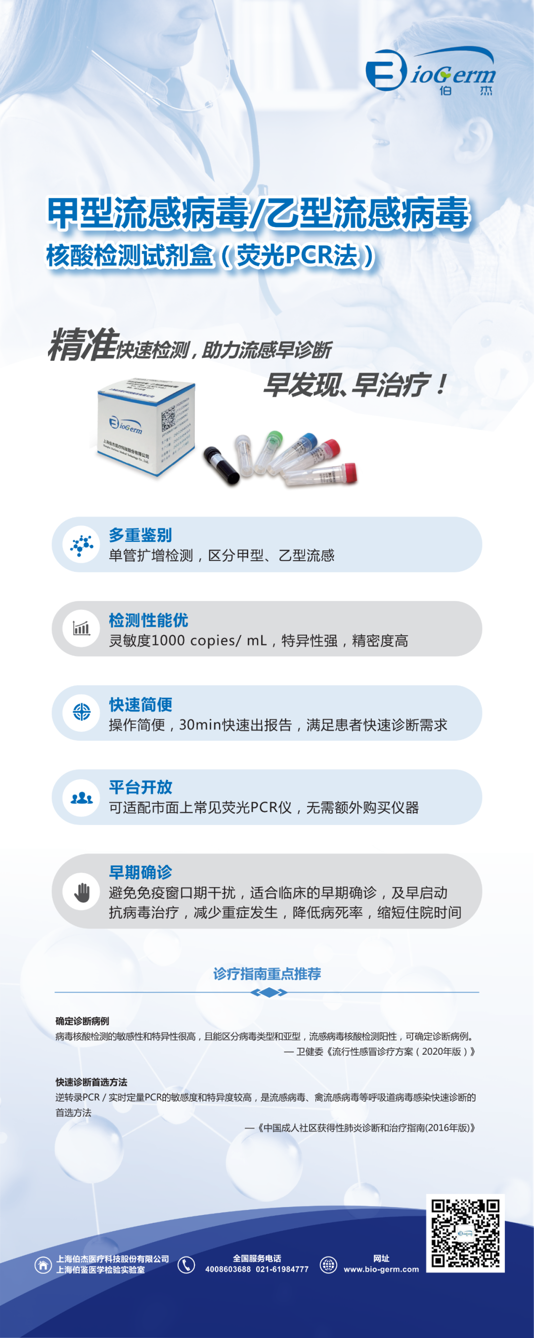 伯杰已推出甲型流感病毒/乙型流感病毒核酸檢測試劑盒(熒光PCR法),具有快速準確的檢測能力,僅需30分鐘即可完成,極大地滿足了門急診及住院患者對于迅速診斷的需求,為早期發(fā)現、及時干預提供了強有力的支持。此外,伯杰另有甲型/乙型流感病毒抗原檢測試劑盒(膠體金法)。操作簡便快捷,1分鐘檢測,15分鐘出結果,成為發(fā)熱門診最得力的病原體篩查工具??蓭椭t(yī)療機構更有效地分流病人,從而顯著提升整體診療效率與服務質量。